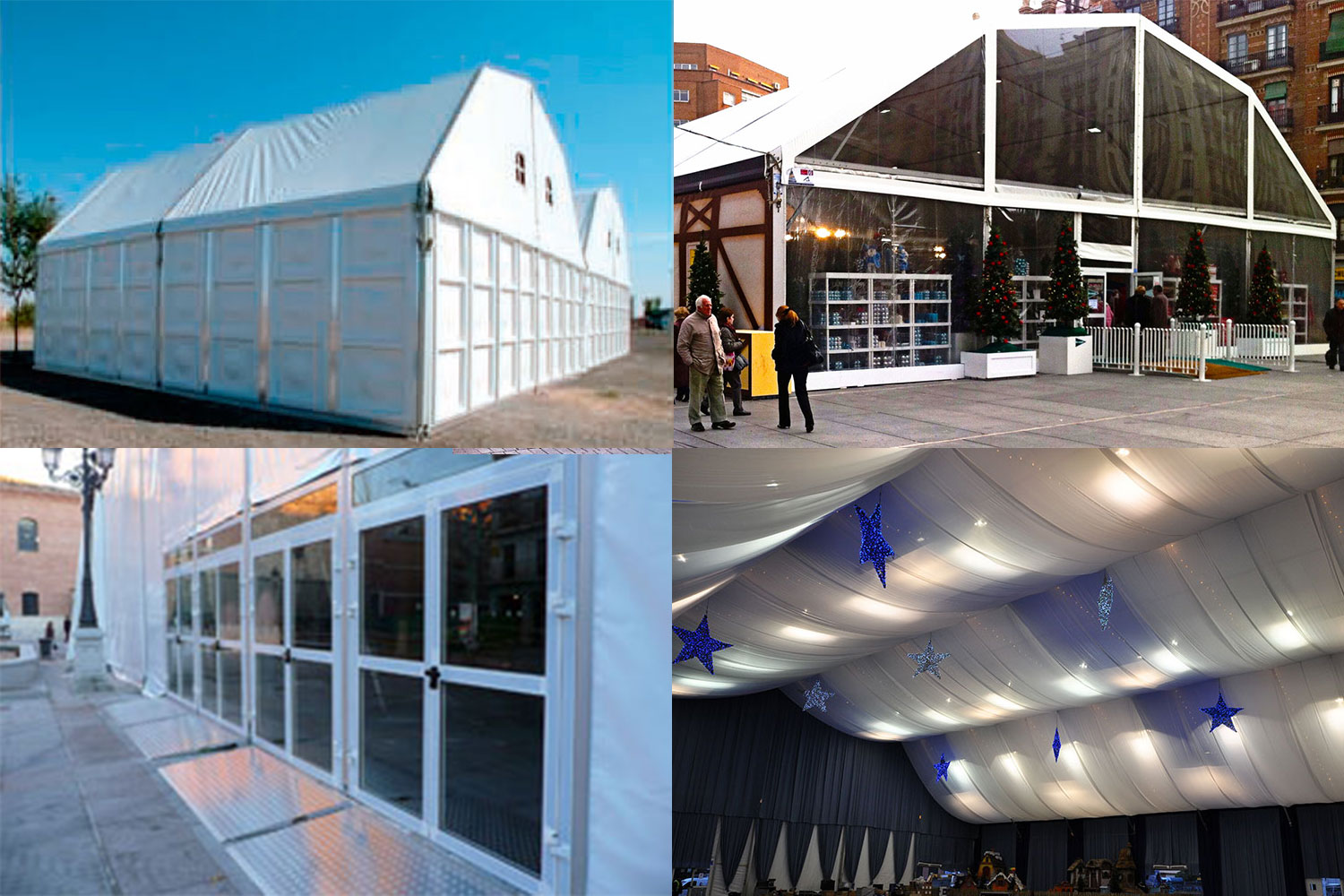 El alquiler y montaje de carpas es el servicio más destacado en INFESA ya que disponemos de gran variedad de carpas poligonales y un amplio stock de dichas estructuras. Nuestras CARPAS POLIGONALES, en estructura de aluminio, cuentan con todo tipo de acondicionamientos e instalaciones extras opcionales.