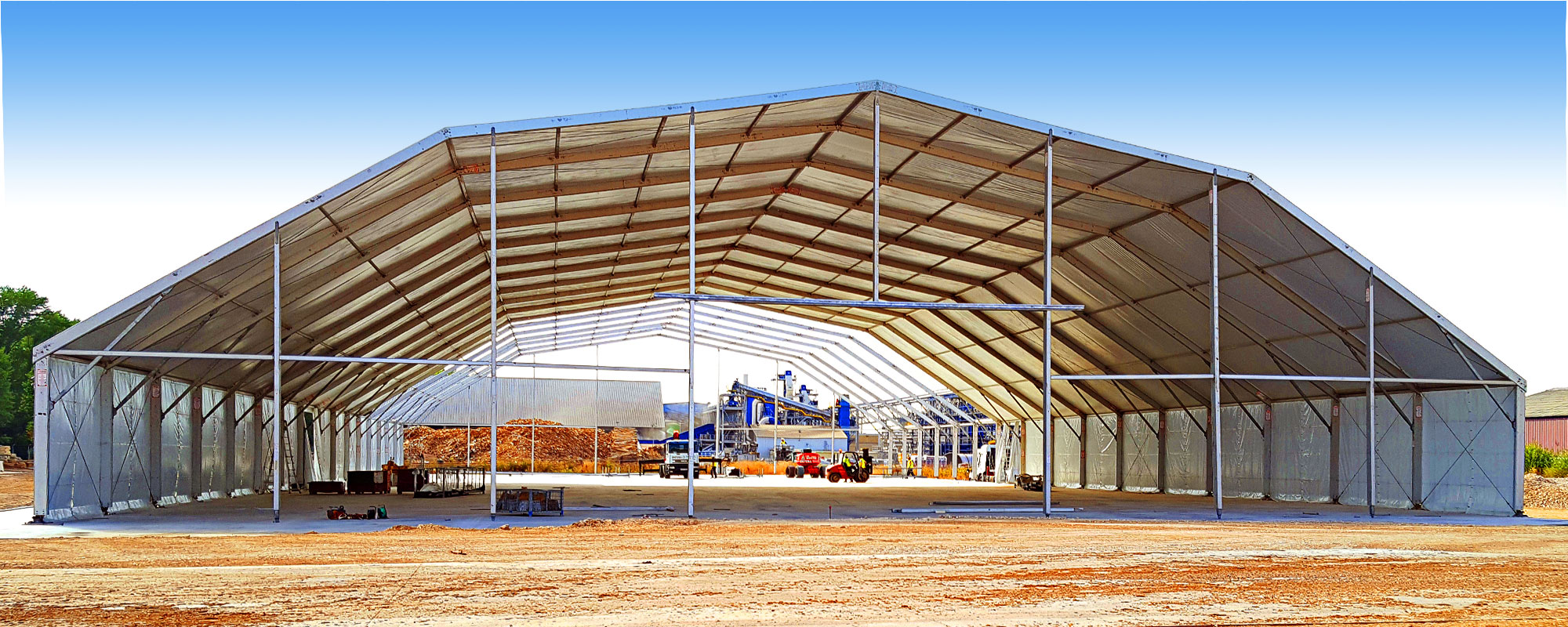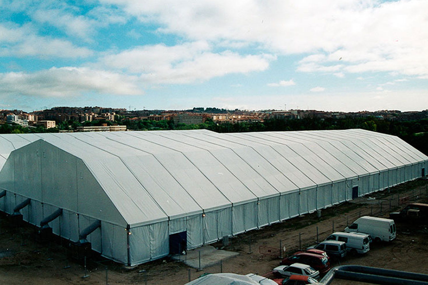 Cerca de 6000 m2 de superficie de almacenamiento en naves industriales nos permiten un gran stock de materiales tanto en carpas poligonales como en stands y mobiliario llegando así donde otros no llegan.