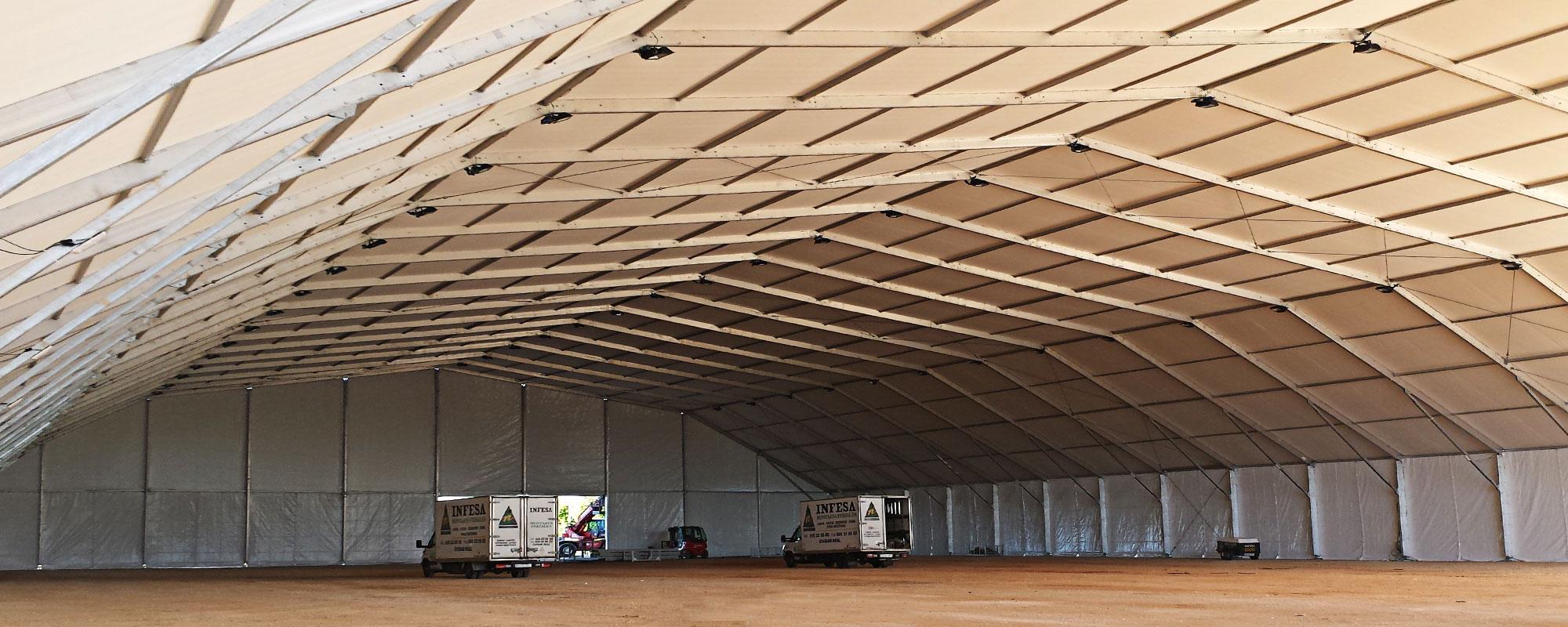 En INFESA contamos con medios propios en: transporte, maquinaria pesada, grúas, elevadores, plataformas, carretillas, generadores, andamiajes, vehículos taller... y todo lo necesario para llevar a cabo el montaje de nuestras carpas poligonales con total autonomía.
